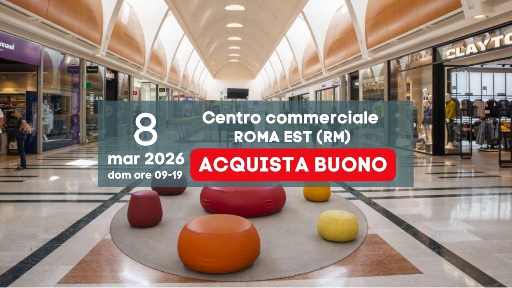 15/03/2026 9:00 – 19:00 C. Commerciale Porta di Roma – (Roma) Dopo l’acquisto, riceverai una mail di conferma con il buono